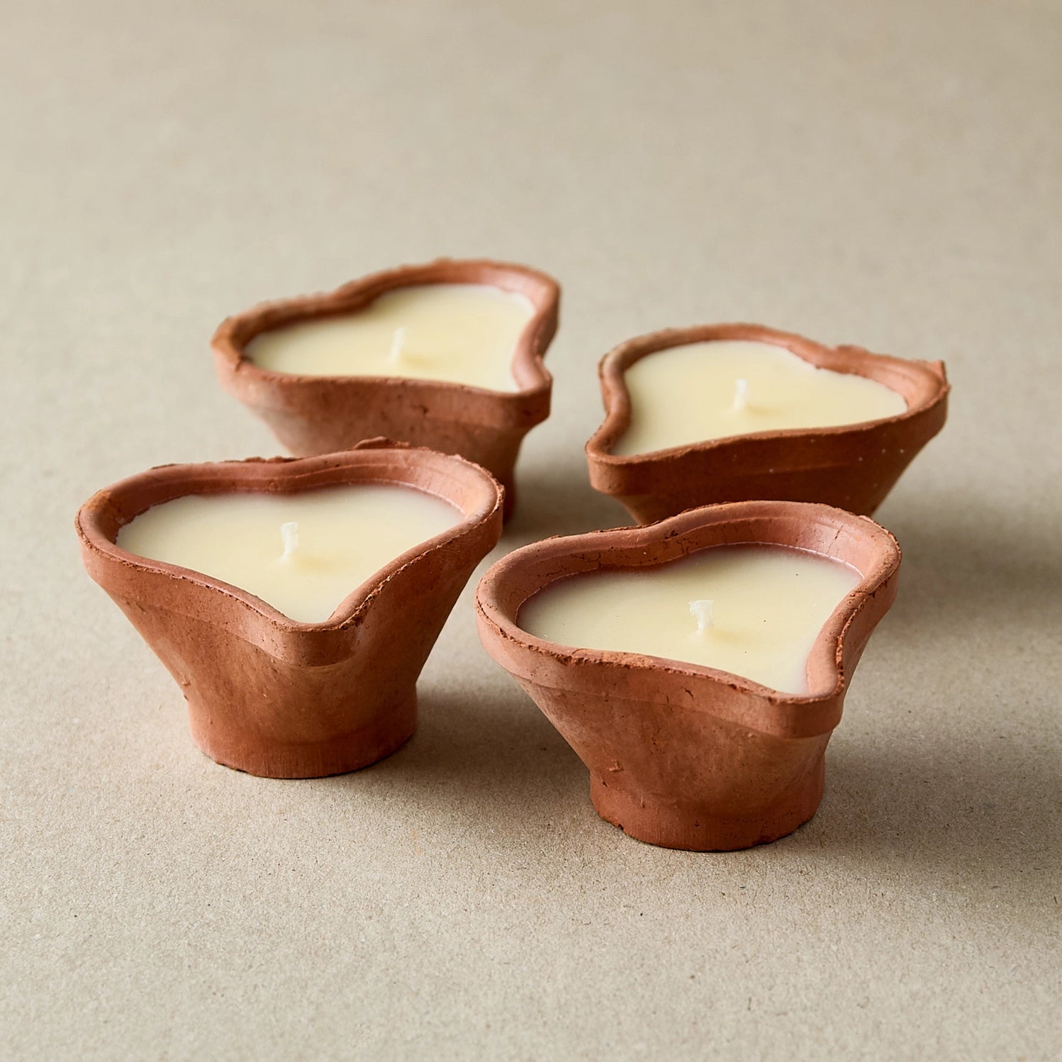 This beautiful set of four comes in a simple, sustainable box — a perfect gift or a mindful addition to your own space. Every candle is crafted by the Dalit artisans of India, with each purchase supporting their work and helping provide care and education for street children in their community.